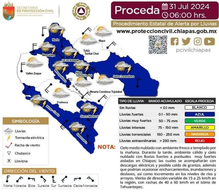 || Específicamente en CHIAPAS se esperan #Lluvias fuertes en las regiones: Istmo-Costa, Soconusco, Sierra , Mariscal, Metropolitana, De los Bosques, Mezcalapa , #ZonaNorte, Selva Lacandona y Altos Tsotsil Tseltal.