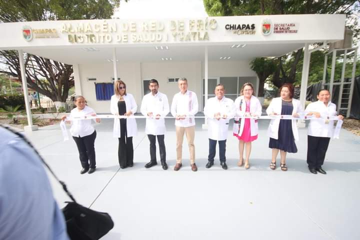 • El gobernador destacó que, de tener sólo un almacén en 2018, ahora se cuenta con una red de 16 almacenes de frío en Chiapas, en beneficio de los 10 Distritos de Salud