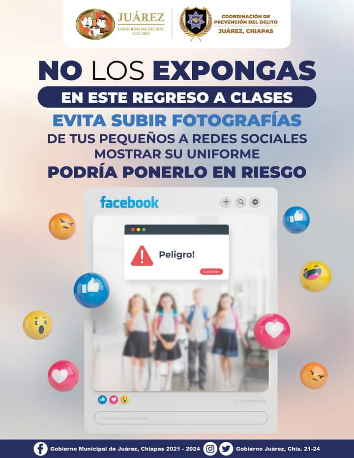 No publiques fotografías de tus hijas e hijos con el uniforme escolar en redes sociales. Evita compartir imágenes que puedan brindar información sobre la institución educativa a la que pertenecen, ya que podrían comprometer la seguridad de los estudiantes y sus familias. Es fundamental ser precavidos en el uso de las redes sociales y proteger la privacidad de los menores.