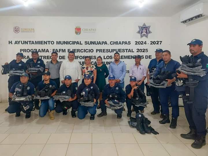 En Sunuapa; Entrega de uniformes y equipamiento a elementos de seguridad pública municipal.