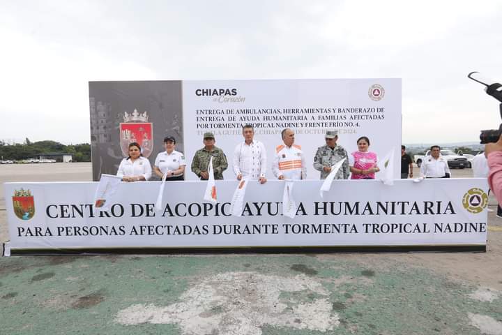 Al dar el banderazo a la entrega de ayuda humanitaria a la población afectada por la tormenta tropical “Nadine” y el frente frío no. 4, el gobernador Rutilio Escandón Cadenas destacó que, ahora más que nunca, las autoridades federales, estatales y municipales han puesto a disposición del pueblo todos los recursos humanos y materiales para atender a las personas que más lo requieren y restablecer los daños materiales causados por los fenómenos naturales.