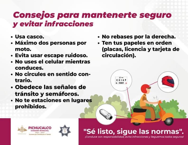 El Gobierno Municipal de Pichucalco, en coordinación con Tránsito y Vialidad Municipal, les recuerda la importancia de cumplir con el reglamento de tránsito.