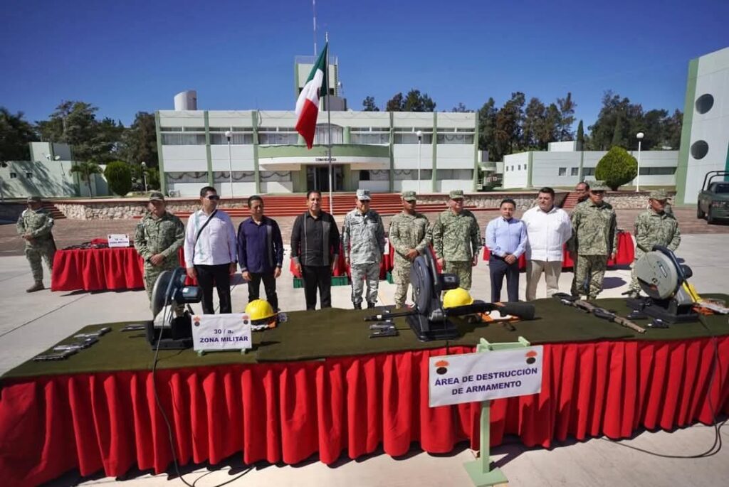 Durante este evento, donde también estuvo presente el secretario de Seguridad del Pueblo, Óscar Alberto Aparicio Avendaño, y el presidente del Poder Judicial, Juan Carlos Moreno Guillén, el gobernador mencionó que la destrucción de armas que han sido confiscadas, abona a la paz del estado.