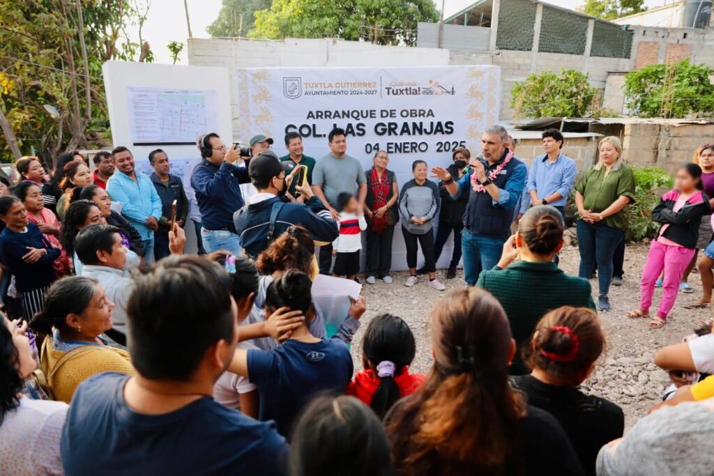 El presidente municipal de Tuxtla Gutiérrez, Angel Torres, en compañía de vecinas y vecinos, puso en marcha los trabajos de construcción de una calle más en beneficio de la colonia Las Granjas, con lo que se mejorará la imagen urbana, la conectividad y movilidad en la zona.