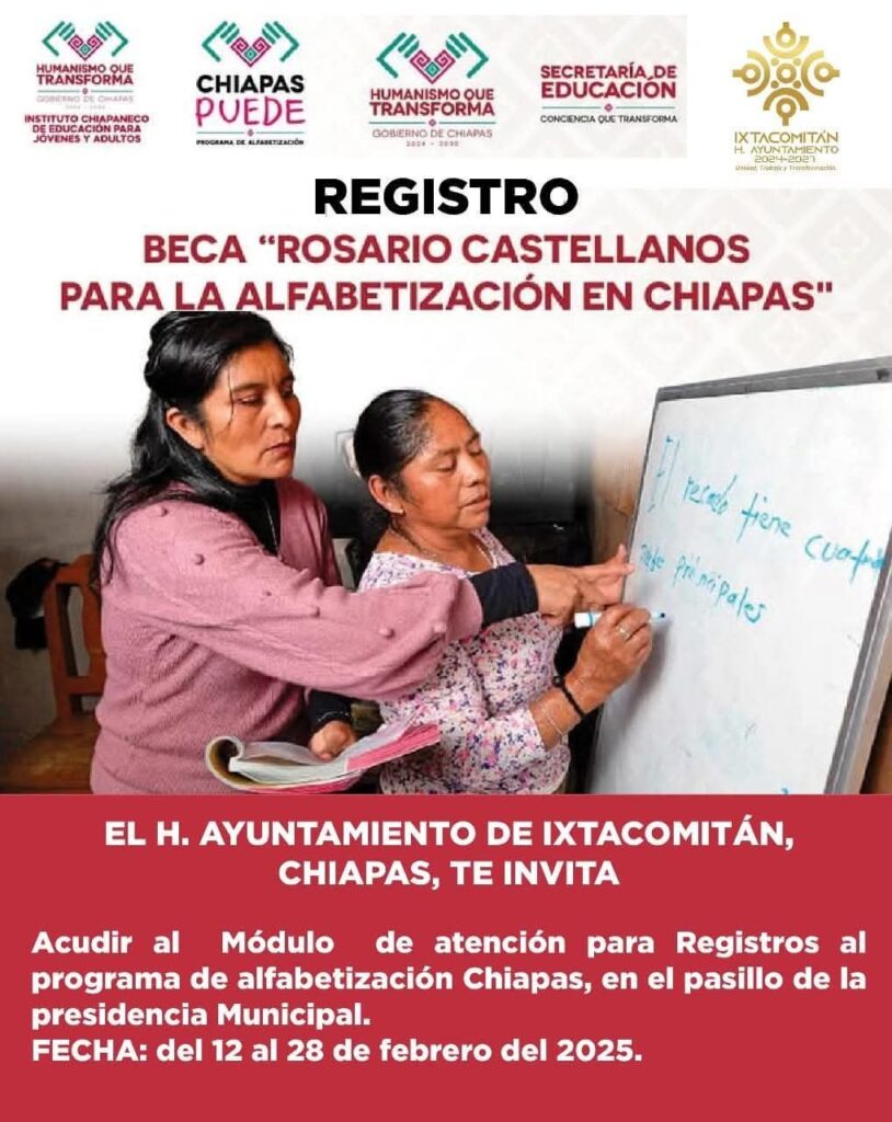AYUNTAMIENTO DE IXTACOMITAN INVITA AL REGISTRO; BECA ROSARIO CASTELLANOS