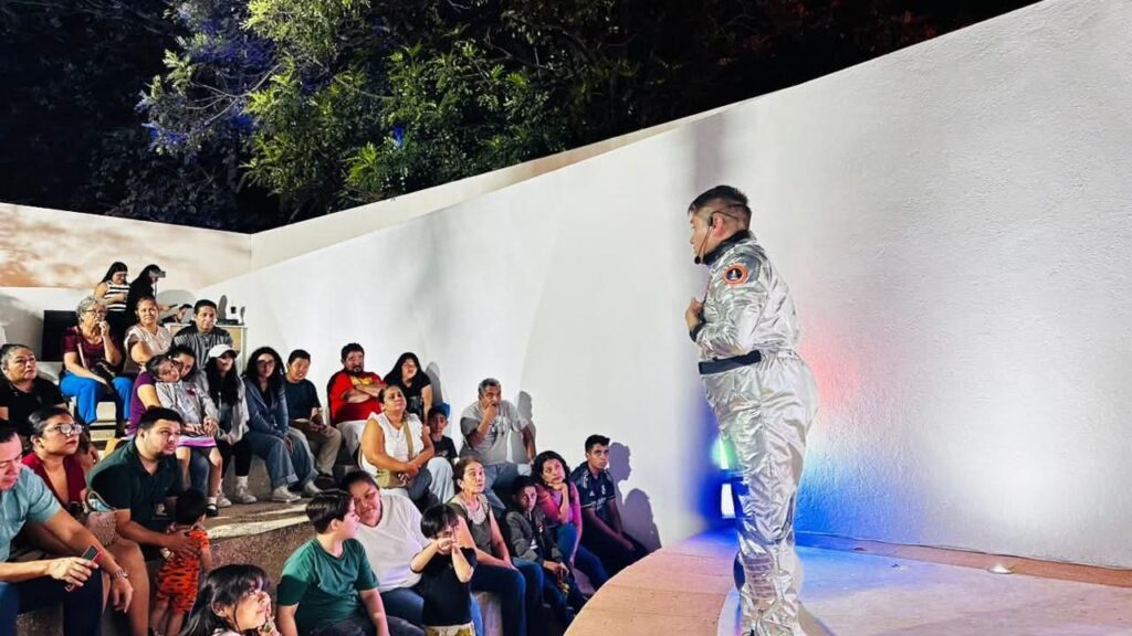La actividad incluyó una presentación de cuentacuentos a cargo del divulgador Óscar Rodríguez Guzmán, quien envolvió a niños, adultos y familias en una velada llena de magia, diversión y conocimientos sobre astronomía.