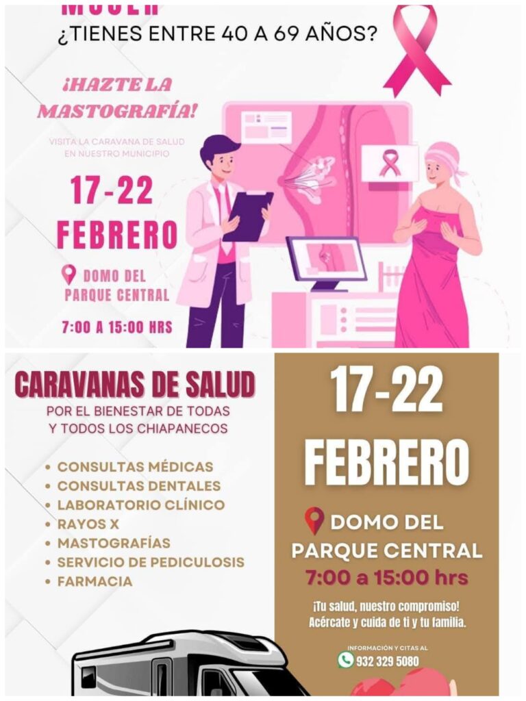 El H. Ayuntamiento de Solosuchiapa que preside Fernando Aparicio Gómez en coordinación con el DIF Municipal informan a la comunidad, que la Caravana de Salud estará en nuestro municipio para brindar atención médica gratuita a toda la población.