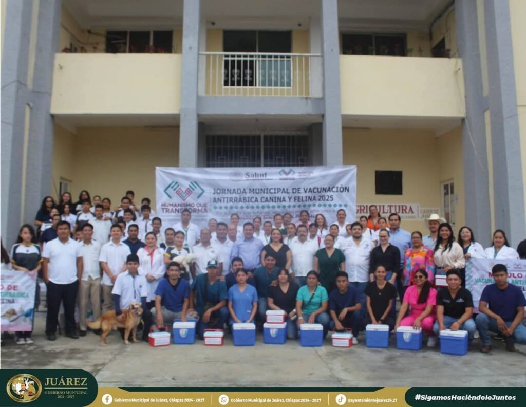 Con el objetivo de reforzar la prevención de la rabia y garantizar la salud pública mediante la inmunización de perros y gatos, el Gobierno Municipal que encabeza Oscar Serra Cantoral, en coordinación con la Secretaría de Salud del Estado de Chiapas a través de la Jurisdicción Sanitaria No. V Pichucalco y la Facultad de Medicina Veterinaria de la Universidad Autónoma de Chiapas (UNACH), dio inicio a la Jornada Municipal de Vacunación Antirrábica Canina y Felina 2025.