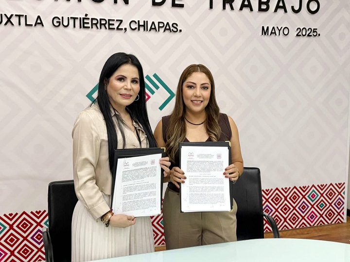 Tuxtla Gutiérrez, Chiapas; 20 de mayo 2025.- Con la finalidad de establecer las bases, así como mecanismos de apoyo y colaboración interinstitucional que permitan unir esfuerzos, recursos y capacidades para impulsar en unidad el bienestar de Chiapas, la titular de la Secretaría de Infraestructura (Seinfra), Anakaren Gómez Zuart, signó convenio marco de colaboración con la directora del Instituto de Seguridad Social de los Trabajadores del Estado de Chiapas (Isstech), María del Carmen Fernández Benavente.