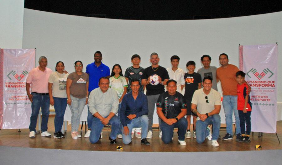 El director del Instituto del Deporte (Indeporte), Adonaí Sánchez Osorio, presentó oficialmente a la y los 16 jugadores seleccionados por equipos profesionales de fútbol, surgidos del programa «Talento Chiapas».