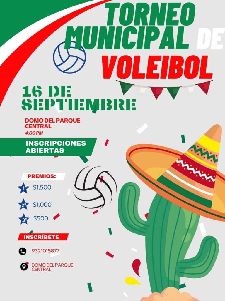 El H. Ayuntamiento de Solosuchiapa, presidido por el Ing. Fernando Aparicio Gómez, invita a todos los aficionados al deporte a disfrutar del Gran Torneo de Voleibol Municipal. El evento se realizará el 16 de septiembre a las 4:00 p.m. en el Domo del parque central, como parte de las celebraciones de la Independencia de México.