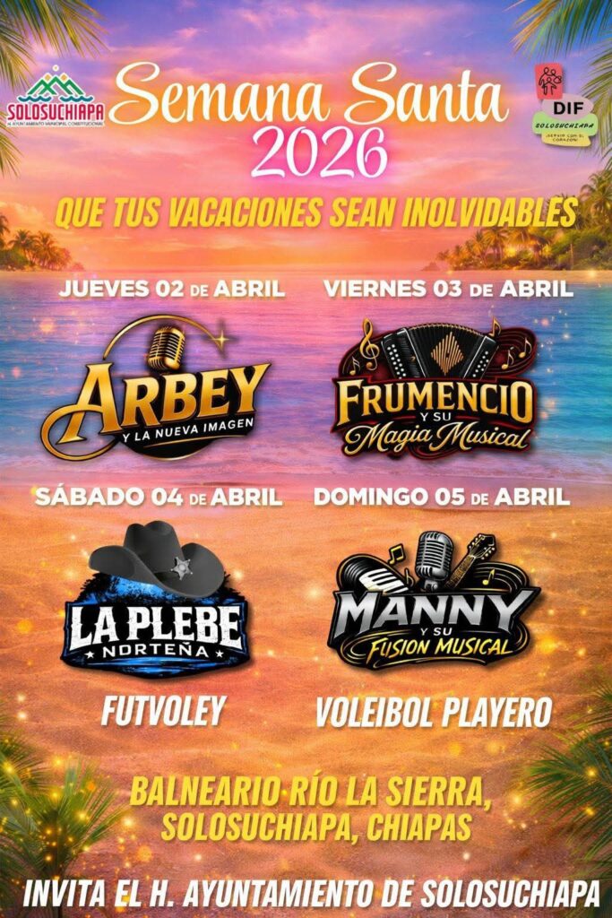 Solosuchiapa, Chiapas, Marzo del 2026.-🌴☀️ ¡Vive una Semana Santa inolvidable! ☀️🌴